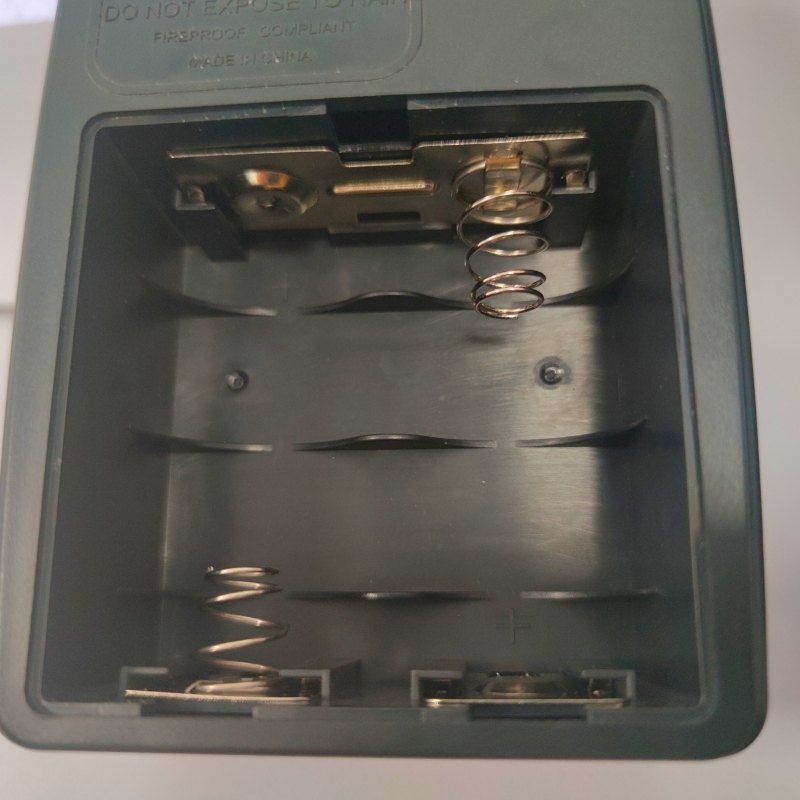 Battery compartment, holds two 1.5V batteries.