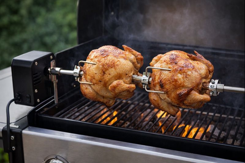 Sample demonstration of a portable battery-powered barbecue motor.