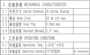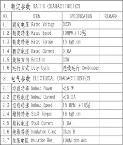Motor specifications: